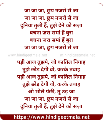 Lyrics of Jaa Chhup Nazaro Se - जा छुप नजरों से