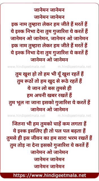 Lyrics of Jaaneman Jaaneman - जानेमन जानेमन