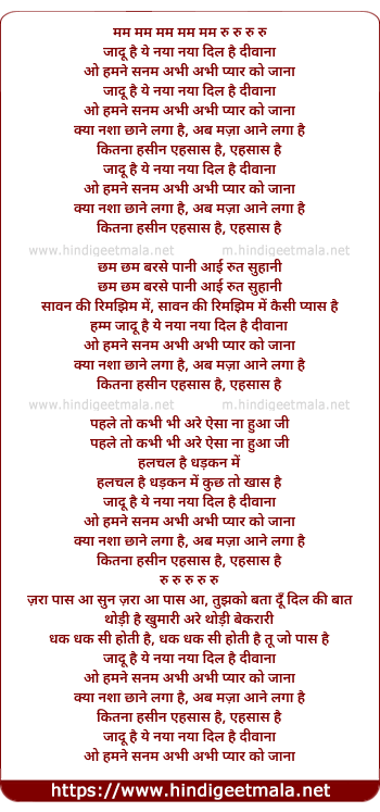 Lyrics of Jadu Hai Ye Naya Naya Dil Hai Diwana - जादू है ये नया नया दिल है दीवाना