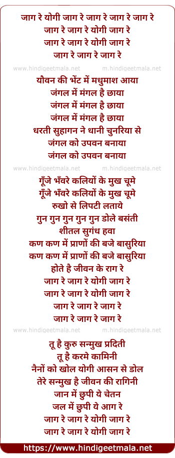 Lyrics of Jaag Re Yogi Jaag Re - जाग रे योगी जाग रे
