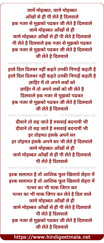 jame mohabbat aankho se hi pi lete hai dilwale