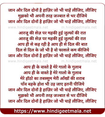 Lyrics of Jaan Aur Dil Dono Hai Haazir - जान और दिल दोनों है हाज़िर
