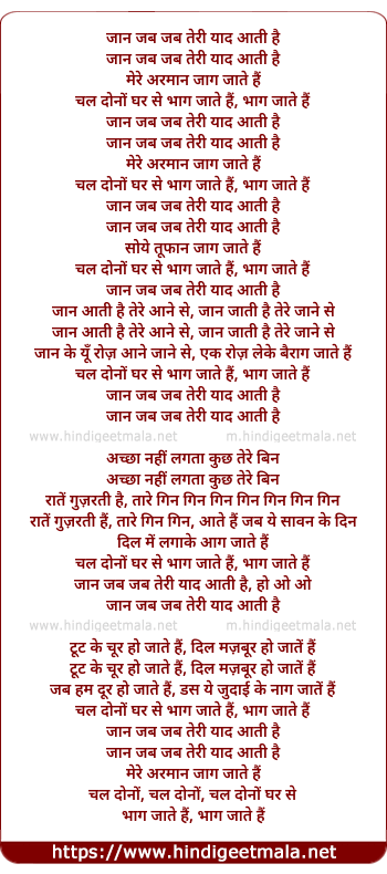 Lyrics of Jaan Jab Jab Teri Yaad Aati Hai Mere Armaan Jaag Jaate Hai - जान जब जब तेरी याद आती है मेरे अरमान जाग जाते हैं