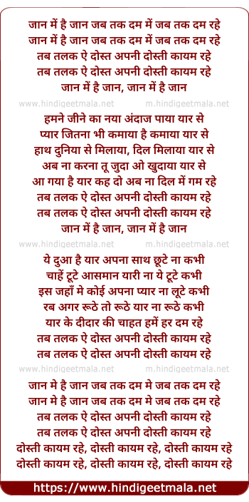 Lyrics of Jaan Me Hai Jaan Jab Tak - जान में है जान जब तक