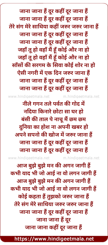 Lyrics of Jaana Dur Kahi Jaana Hai - जाना दूर कहीं जाना हैं