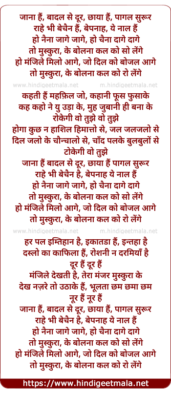 Lyrics of Jana Hai Badal Se Door - जाना हैं बादल से दूर
