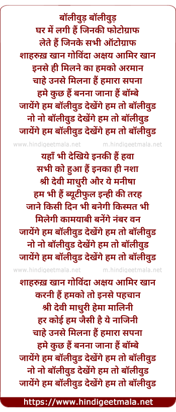 Lyrics of Jaana Hai Bollywood - बॉलीवुड़ बॉलीवुड़