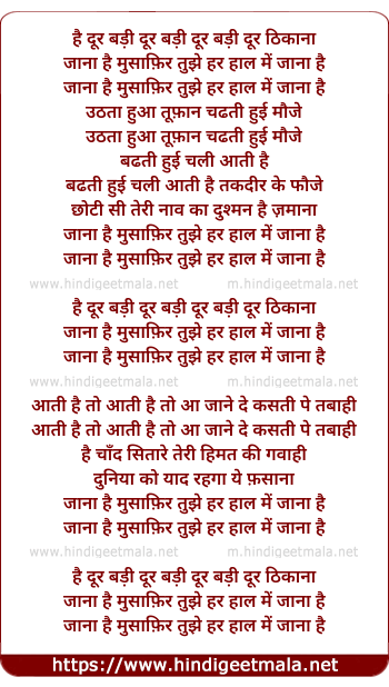 Lyrics of Jaana Hai Musafir Tujhe Har Hal Me Jana - जाना है मुसाफ़िर तुझे हर हाल में जाना है