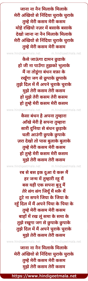 Lyrics of Jaana Na Nain Milake - जाना ना नैन मिलाके