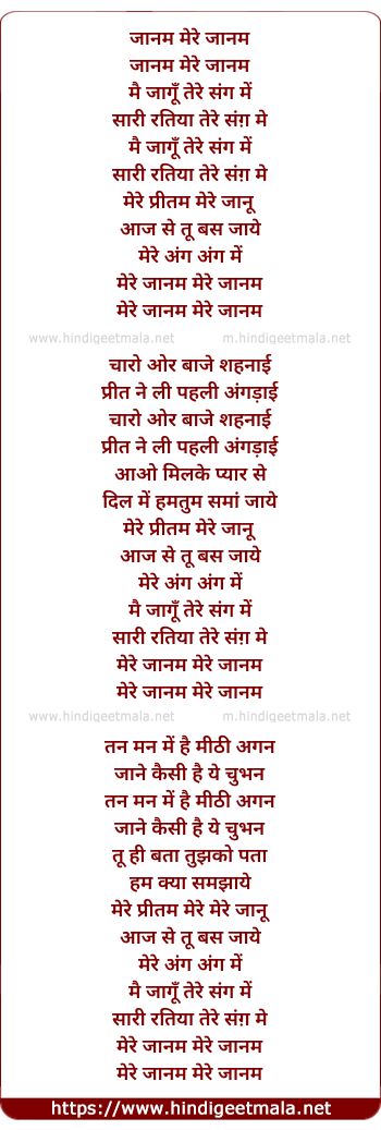 Lyrics of Janam Mere Jaanam (Pyar Ka Saudagar) - जानम मेरे जानम (प्यार का सौदागर )