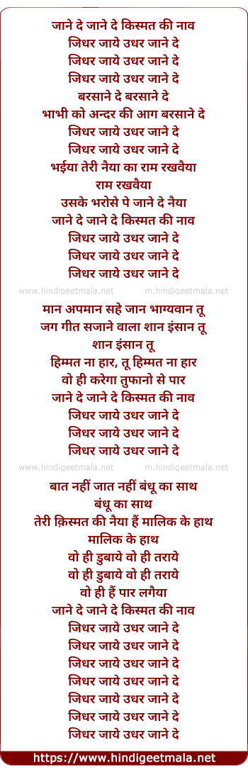 Lyrics of Jaane De Kismat Ki Naav - जाने दे किस्मत की नाँव