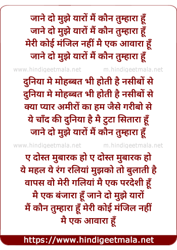 Lyrics of Jaane Do Mujhe Yaaro, Mai Koun Tumhara Hu - जाने दो मुझे यारों, मैं कौन तुम्हारा हूँ