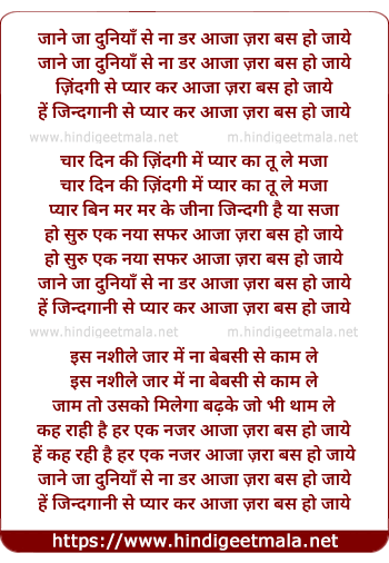 Lyrics of Jaane Jaan Duniya Se Na Dar - जाने जा दुनियाँ से ना डर