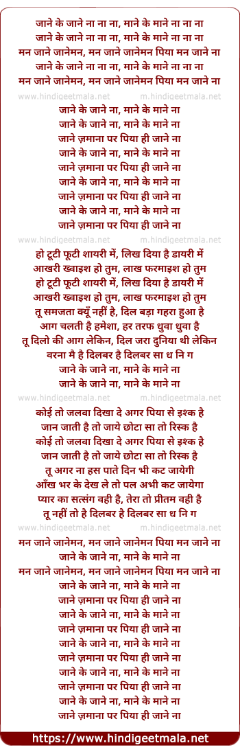 Lyrics of Jaane Ke Jaane Na (Remix) - जाने के जाने ना ना ना, माने के माने ना ना ना