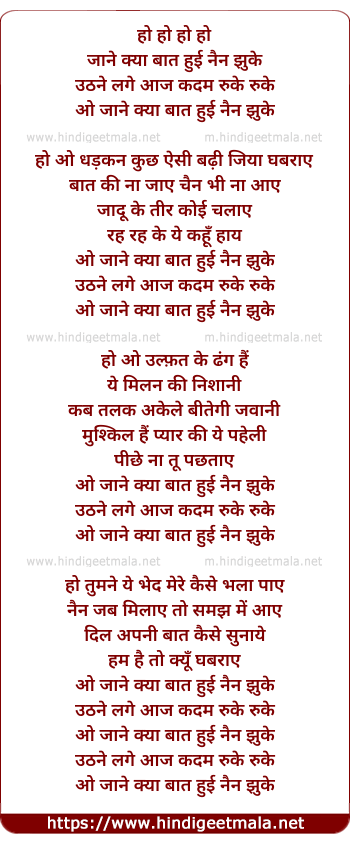 Lyrics of Jaane Kya Baat Huyi Nayan Jhuke - जाने क्या बात हुई नैन झुके