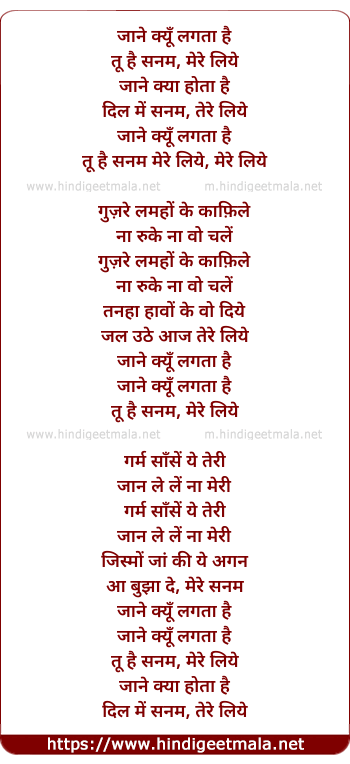Lyrics of Jaane Kyo Lagta Hai - जाने क्यूँ लगता है