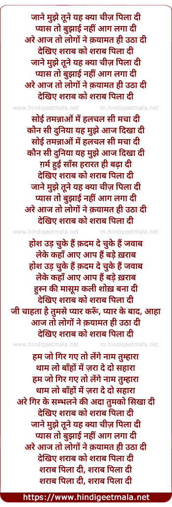 Lyrics of Jane Mujhe Tune Yah Kya Chij Pila Di - जाने मुझे तूने यह क्या चीज़ पिला दी