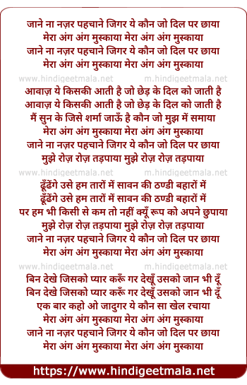 Lyrics of Jaane Na Najar Pehachaane Jigar - जाने ना नज़र पहचाने जिगर