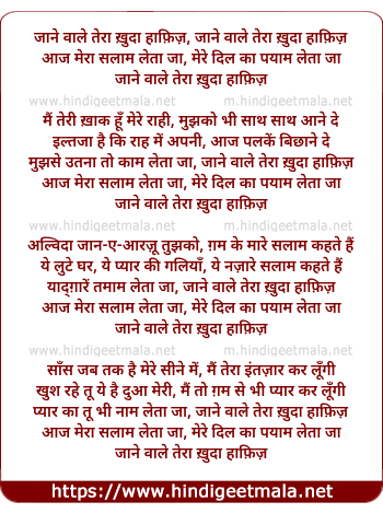 Lyrics of Jaane Vaale Teraa Khuda Haafij - जाने वाले तेरा ख़ुदा हाफ़िज़