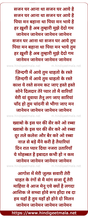 Lyrics of Jaaneman Jaaneman - जानेमन जानेमन