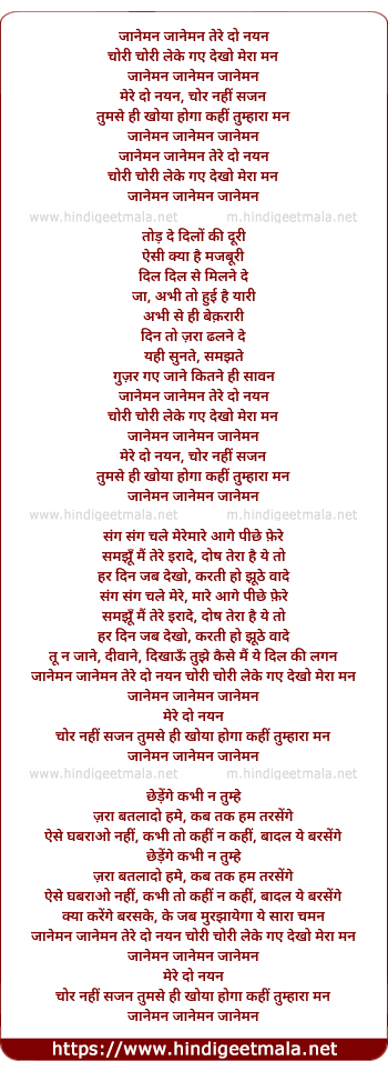 janeman janeman tere do nayan, chori chori leke gae dekho mera man