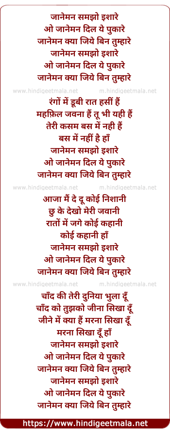 Lyrics of Jaaneman Samjho Ishare (Part - Il) - जानेमन समझो इशारे