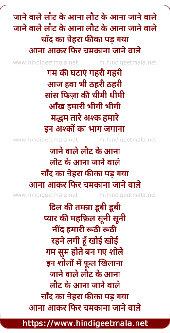 Lyrics of Jaanewale Laut Ke Aana - जाने वाले लौट के आना
