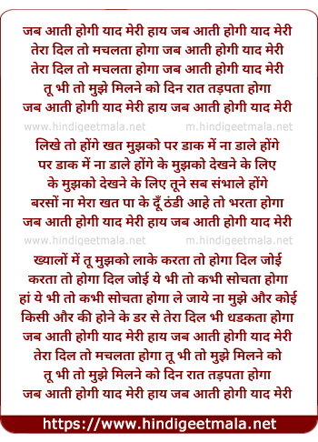 Lyrics of Jab Aati Hogi Yaad Meri - जब आती होगी याद मेरी