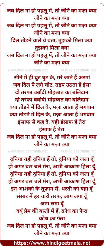 Lyrics of Jab Dil Na Ho Pehlu Me - जब दिल ना हो पहलू में, तो जीने का मज़ा क्या