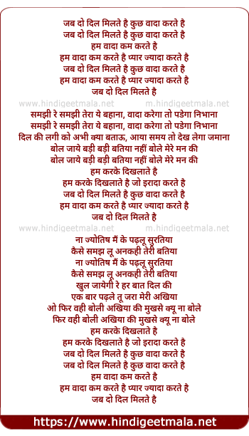 Lyrics of Jab Do Dil Milte Hai Kuch Vada Karte Hai - जब दो दिल मिलते है कुछ वादा करते है