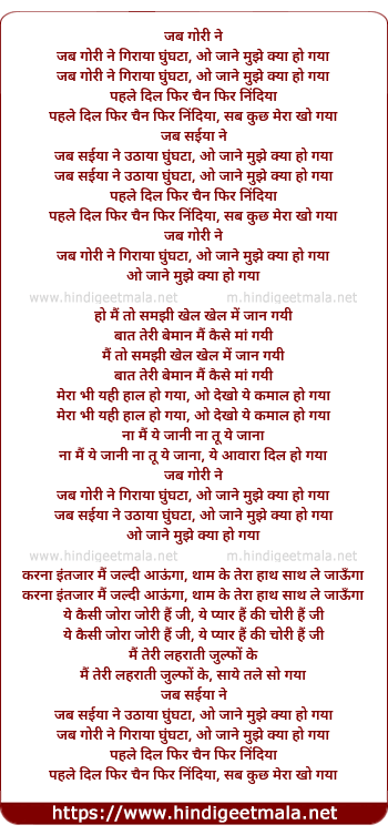 Lyrics of Jab Gori Ne - जब गोरी ने