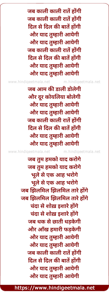 Lyrics of Jab Kaali Kaali Raate Hongi - जब काली काली रातें होंगी