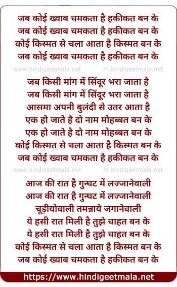 Lyrics of Jab Kabhi Khwab Chamakta Hai Hakikat Ban Ke - जब कोई ख्वाब चमकता है हकीकत बन के