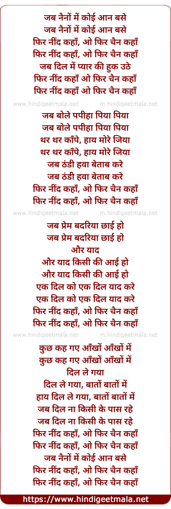 Lyrics of Jab Naino Me Koi Aan Base - जब नैनों में कोई आन बसे