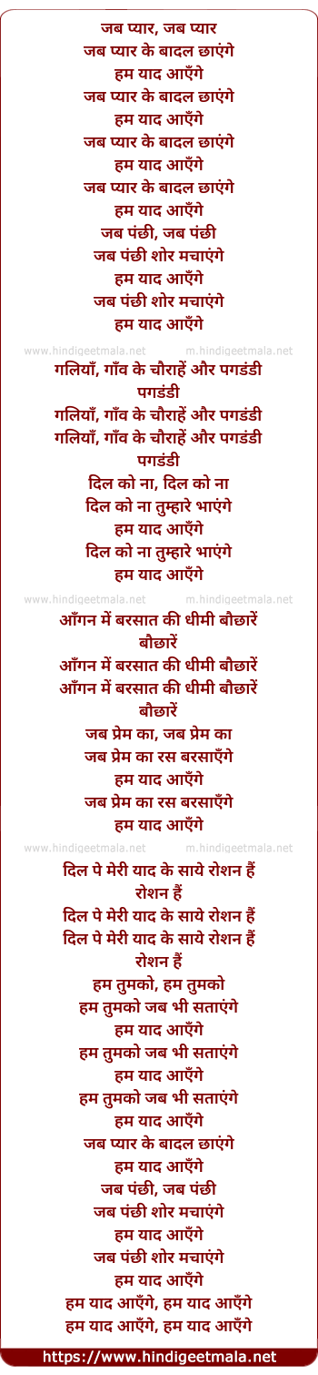 Lyrics of Jab Pyar Ke Baadal Chhaayenge - जब प्यार, जब प्यार