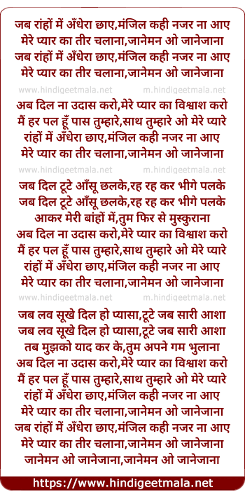 Lyrics of Jab Raaho Me Andhera Chaye - जब रांहों में अँधेरा छाए