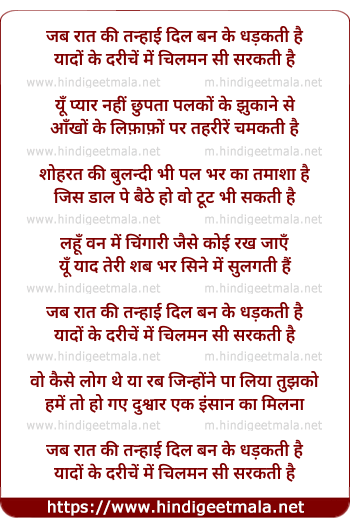 Lyrics of Jab Raat Ki Tanhaai - जब रात की तन्हाई दिल बन के धड़कती है