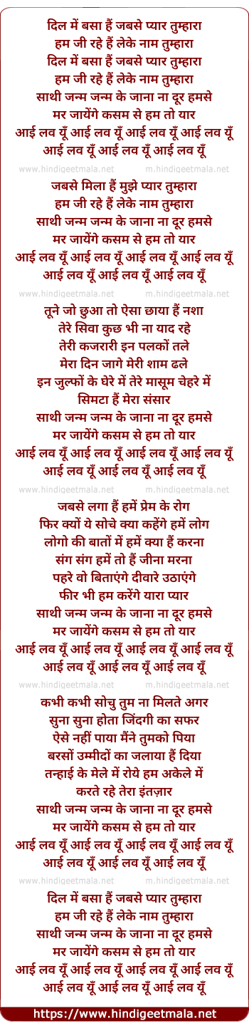 Lyrics of Jab Se Mila Hai Mujhe Pyar Tumhara - जब से मिला है मुझे प्यार तुम्हारा