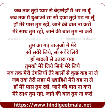 ha mere paas tum raho, jaane ki baat na karo