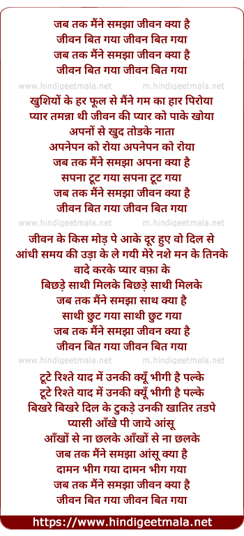 Lyrics of Jab Tak Maine Samjha Jeevan Kya Hai, Jeevan Beet Gaya - जब तक मैंने समझा जीवन क्या है