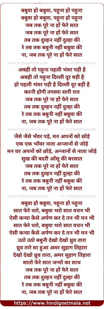 Lyrics of Jab Tak Pure Naa Hon Phere Saat - जब तक पूरे ना हों फेरे सात