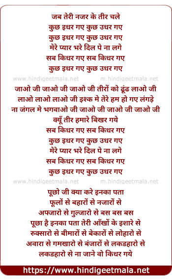 Lyrics of Jab Teri Nazar Ke Teer Chale - जब तेरी नजर के तीर चले