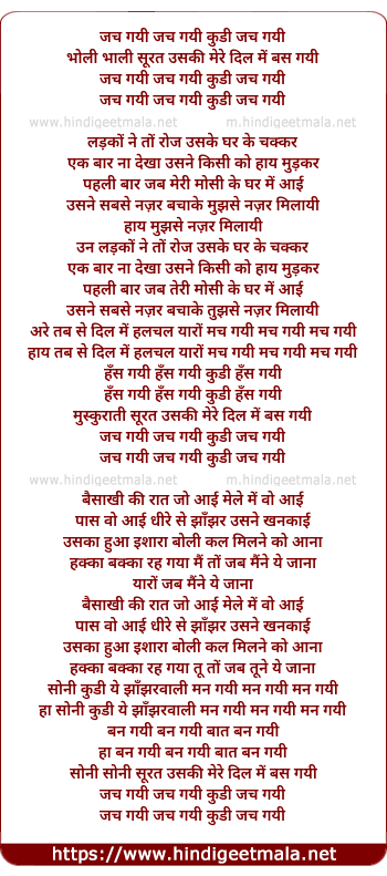 Lyrics of Jach Gayee, Jach Gayee Khudi Jach Gayee - जच गयी जच गयी कुडी जच गयी