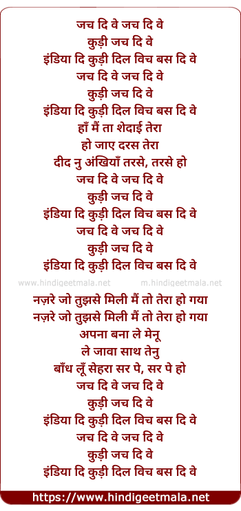Lyrics of Jachdi Ve Kudi - जचदि वे कुड़ी