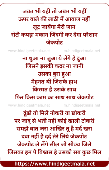 Poetic Translation - Lyrics of Jackpot (End Title) - जेकपोट