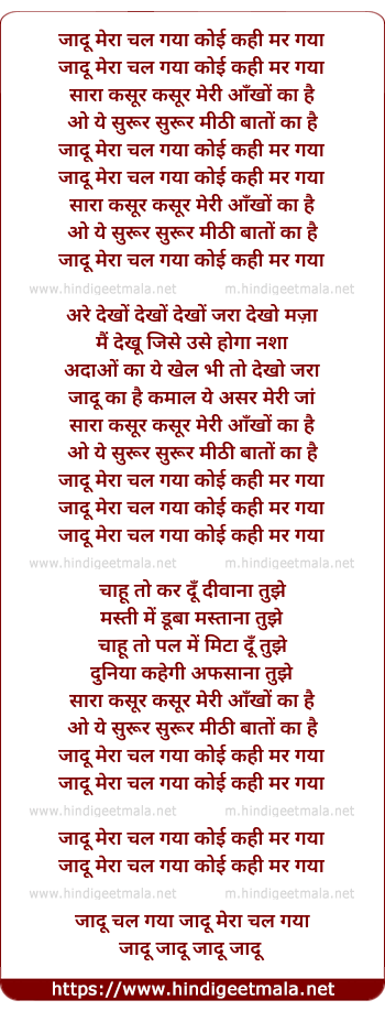 Lyrics of Jadoo - II - जादू मेरा चल गया कोई कही मर गया