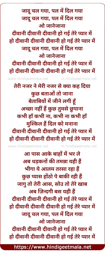 Lyrics of Jadu Chal Gaya - जादू चल गया, पल में दिल गया