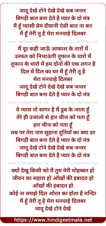 Lyrics of Jadu Dekhe Tone Dekhe - जादू देखे टोने देखे