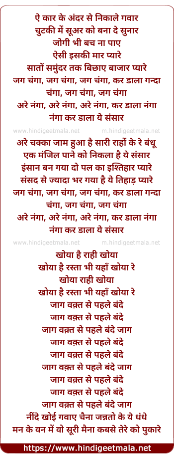 Lyrics of Jag Changa - ऐ कार के अंदर से निकाले गवार