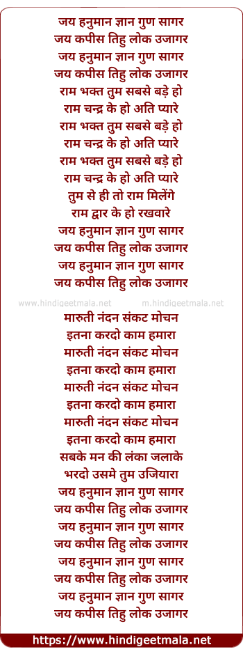 Poetic Translation - Lyrics of Jai Hanuman Gyan Gun Sagar (Chandrachur)